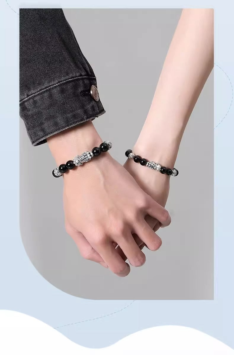 Black Obsidian Tiger Eye Pixiu Bracelet, Protection & Wealth Energy Beaded Bracelet